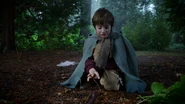 Jego ojciec stawał się coraz bardziej potężny i przerażający jako Mroczny oraz trzymał go w domu, z dala od innych ludzi. Kiedy chłopiec rysował, Rumpelsztyk wrócił do domu z nożem, którym chciał naostrzyć węgiel Bae'a. Urażony chłopiec strącił go na podłogę i powiedziała, że nie chce niczego, co jego ojciec zdobył, będąc Mrocznym. Gdy mężczyzna spytał syna, czego chce, chłopiec odpowiedział, iż pragnie powrotu ojca. Baelfire chciał również bawić się z przyjaciółmi, czego Rumplestyk zabronił, bojąc się, że jego wrogowie mogliby go porwać. Natomiast Baelfire domyślił się, że ta ochrona jest tak naprawdę lękiem przed tym, że mógłby opuścić ojca i nigdy nie wrócić. Pewnej nocy Bae został przyciągnięty do ogniska muzyką graną przez Piotrusia Pana. Chętnie spędził czas z chłopcami w swoim wieku. Piotruś chciał go zaciągnąć do swojej własnej krainy, zwanej Nibylandią, ale najpierw pragnął zawrzeć umowę z Rumpelsztykiem. Mroczny musiał zapytać Baelfire'a, czy chłopiec chce zostać z ojcem, czy opuścić go i wyruszyć do Nibylandii. Robiąc to, Rumpelsztyk dowiedzie, że troszczy się o swojego syna i mu ufa. Jednak mężczyzna nie zgodził się i za pomocą magii teleportował syna do domu. W trosce o jego bezpieczeństwo, ojciec krótko opowiedział mu o swojej znajomości z Piotrusiem, która zakończyła się, kiedy ten go zdradził. Pomimo tego Baelfire powiedział mu, że wiedział o umowie z Piotrusiem i dodał, że gdyby Rumpelstyk dał mu wybór, Bae zostałby z ojcem. Gorzko rozważał straconą szansę na bycie rodziną, chociaż Rumpelstyk stwierdził, że oni mogą się nią stać. Odrzucając ten pomysł, Baelfire wybiegł z domu.[8]